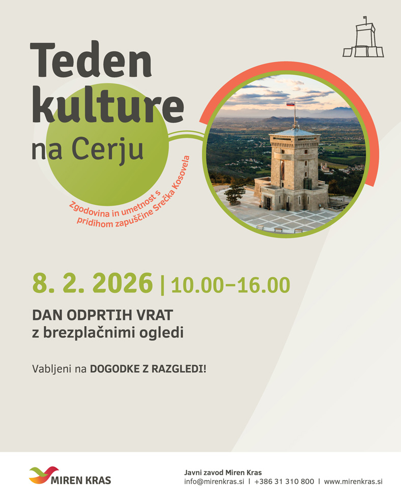 V nedeljo, 8. februarja na slovenski državni praznik - dan Kulture bo Pomnik miru na Cerju odprt brezplačno za obiskovalce.