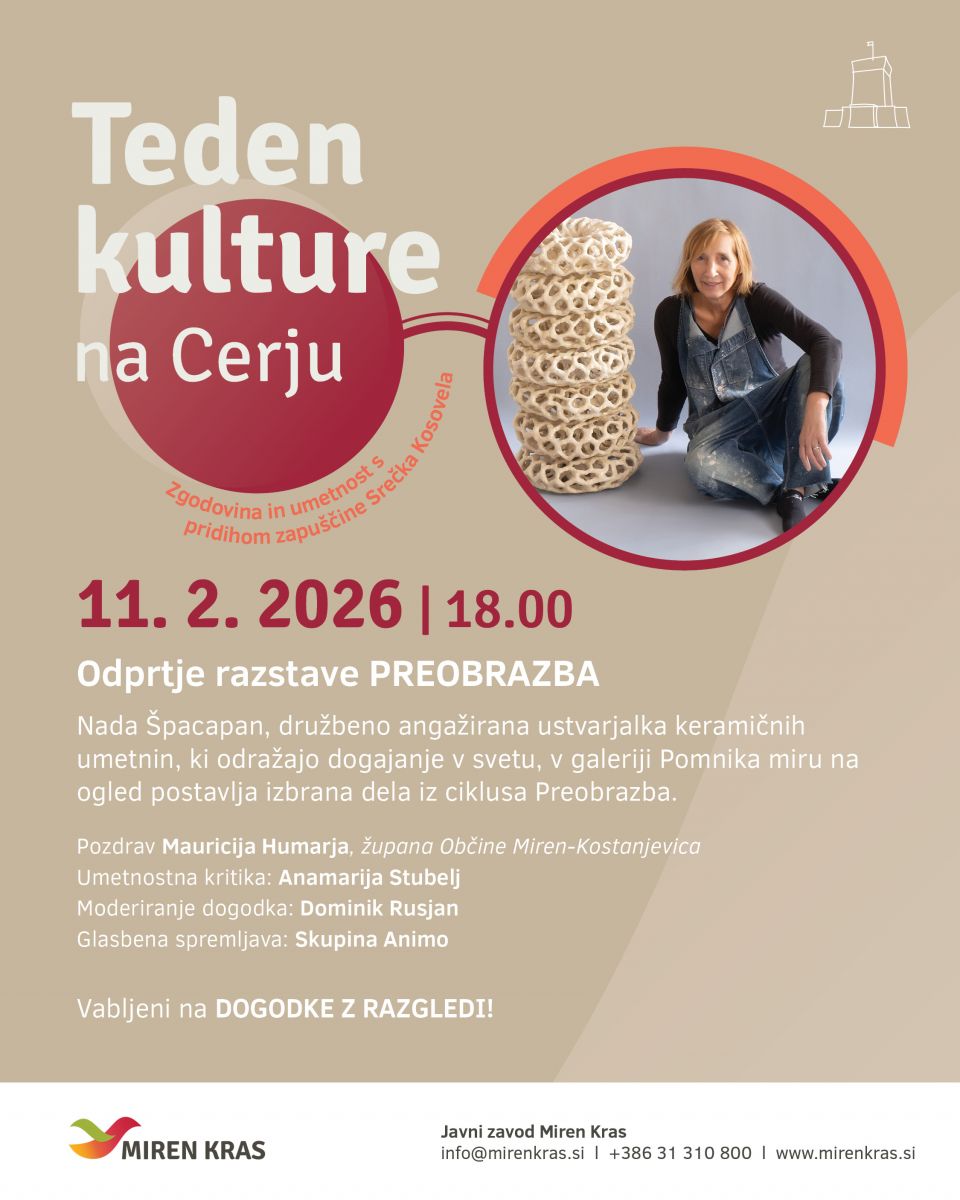 Nada Špacapan, družbeno angažirana ustvarjalka keramičnih umetnin, ki odražajo dogajanje v svetu, v galeriji Pomnika miru na ogled postavlja izbrana dela iz ciklusa Preobrazba.