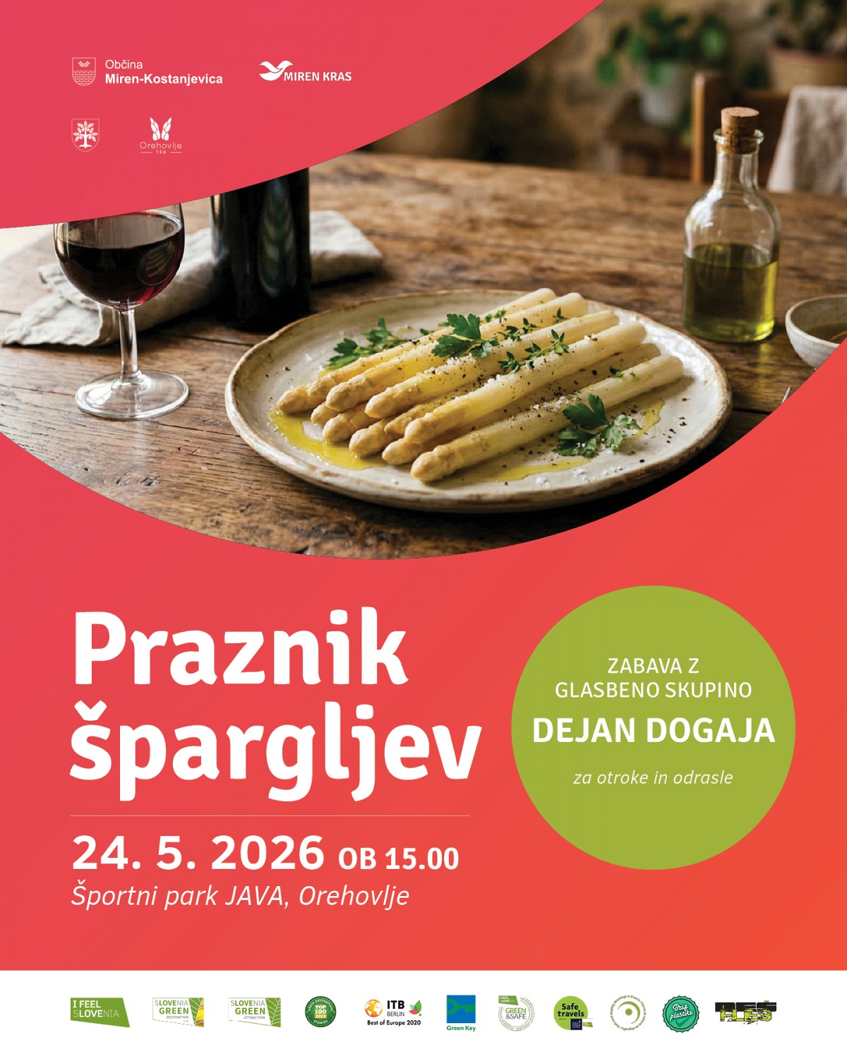 Vrhunec pomladnega kulinaričnega dogajanja prinaša Praznik špargljev v Orehovljah. V nedeljo, 24. maja, s pričetkom ob 15.00 se bodo tradicionalni povorki vozov, stojnicam in srečelovu ter Dejanu Dogaja pridružili tudi posebni gostje. Med njimi bo kraljica terana, domačinka Ana Sodnik s Sel na Krasu, ki bo razrezala špargljevo rolado velikanko.